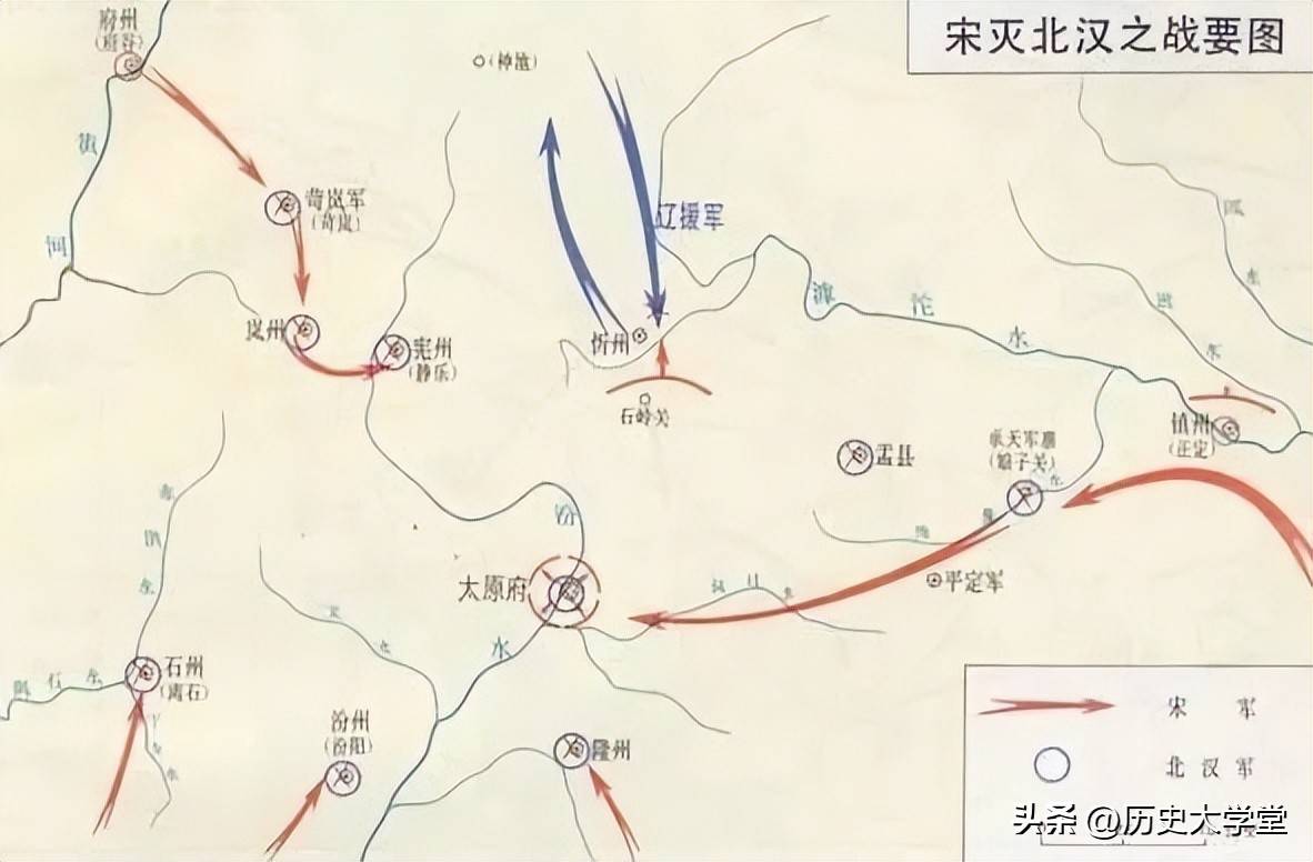公元954年,柴荣亲自带兵征讨北汉,虽然在高平会战中取得了辉煌的胜利,消灭了北汉的主力精锐,但在随后的围攻北汉都城太原时,却因久攻不克而不得不无功而返。后来的第二次北伐时,柴荣不幸染病,最终撤兵(不久后便去世)。而赵匡胤继位后,继续着柴荣未竟的事业,数次亲征北汉,但每次都未能攻克其都城太原,最终尽管赵匡胤几乎统一了南北,但北汉依旧屹立未倒。