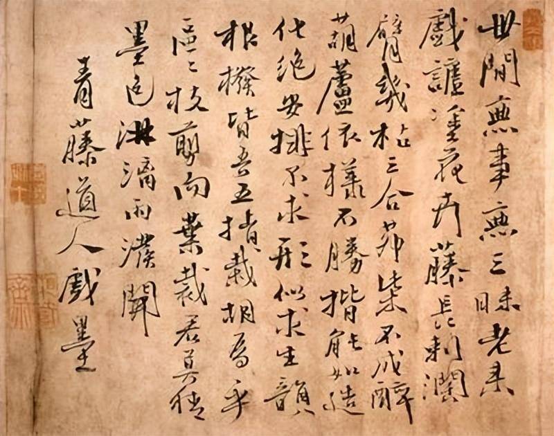 徐渭虽然因科举成绩未显赫,但他在官场上却也有所作为,曾出任胡宗宪幕府,在一些政治和军事事务上展现了非凡的才能。然而,失去胡宗宪的庇护后,徐渭的命运急转直下,最后因病自杀未遂,入狱七年,虽然最终得以释放,但晚年的他依然过得贫困潦倒,直到死。