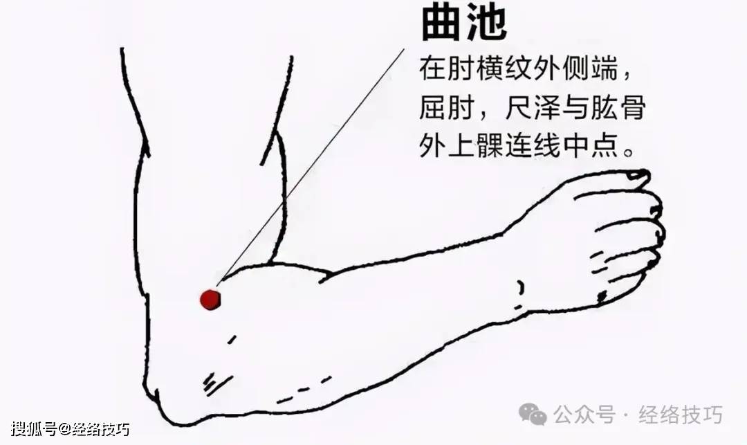 曲池位于肘部,是调理上焦郁热的常用穴位。传统养生以为,头面发热,多与阳明经有关。按压此地,能把热往下引导,从而恢复清阳上升、浊阴下降的状态。