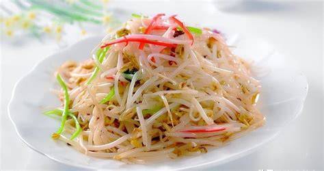 绿豆芽:绿豆芽拌香干或与蒜泥、辣椒等调料拌匀,清爽开胃。