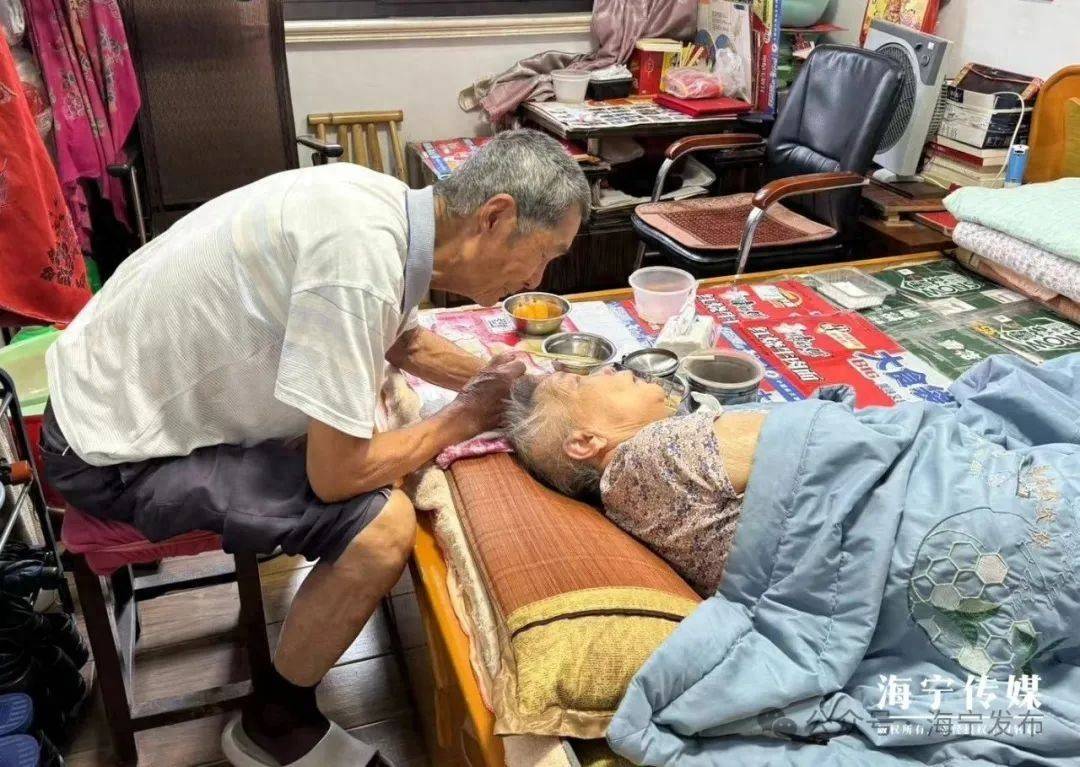 为了让老伴血脉通畅、血压正常,喂药打针之余,杜雨亭还自学了用调羹来刮痧,每天用调羹刮一次,确保疗效到位。如今,这对夫妻早已过了64年的金婚。杜雨亭曾对老伴承诺——“尽管放心,一切有我,吃喝拉撒这些我全都会服侍好你”。多年下来,诺言践行如一,老伴姚雪芬康复得不错,长了十斤肉,而老杜却瘦了十斤,但他觉得一切都是值得的。