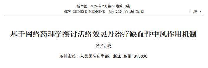 [1]沈佳豪.基于网络药理学探讨活络效灵丹治疗缺血性中风作用机制,新中医,2024-07-10