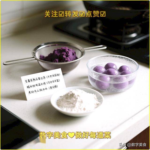 ✔ 紫薯蒸熟后要过筛(不然有筋络)