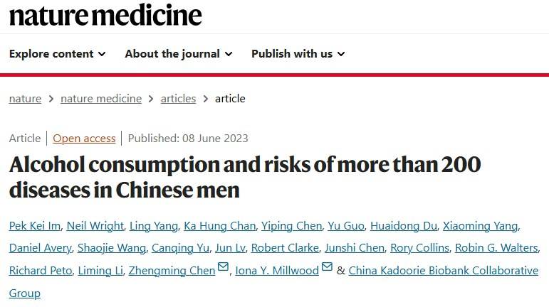 无独有偶,《自然·医学》期刊上也发表过一项由北京大学、牛津大学联合进行的研究,该研究对我国慢性病前瞻性研究中51.2万名成年人的数据进行了12年的随访,其中有41%为男性。