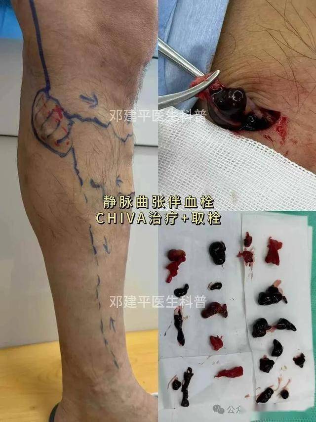 最近接诊了几位患者,都是腿上青筋突起多年,最近突然出现局部红、肿、痛,门诊血流动力学评估,发现了静脉血栓,所幸血栓只是局限在浅静脉,及时进行了CHIVA治疗和取血栓,避免进一步蔓延到深静脉,引发肺栓塞的可能。
