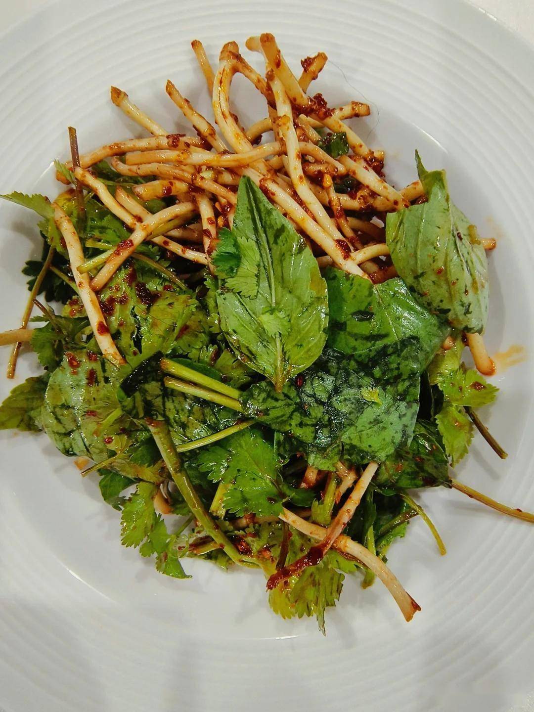 关火后撒荆芥叶,用余温激发清凉感