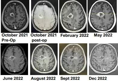 值得关注的是,首位在2021年10月入组的GBM患者,存活时间已超过两年。后续入组的四名患者,存活期均在15个月以上,其中两名患者的存活时间分别为20.3个月和17.5个月,即便他们接受的治疗剂量不足预计治疗剂量的25%。