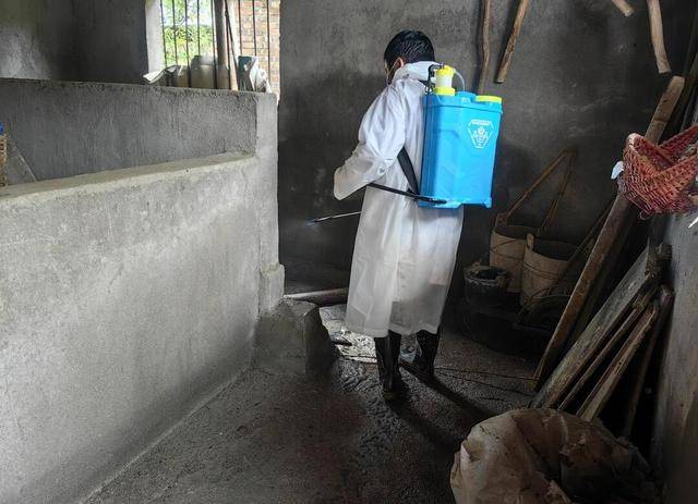 消杀工作人员根据“全面覆盖,不留死角”的原则,对受灾室内地面、墙壁、厕所、畜牧养殖地等生活重点区域实施药物喷洒消毒作业。共出动8支机动队,33人次,当日消毒面积13202㎡,为78户受灾户消毒,发放4件84消毒液。此外,还指导洒水车对广场等人群活动聚集的场所开展消毒工作。除此之外,为保障村民饮用水卫生安全,县疾控中心组织人力、物力,对2口被淹水井进行了消毒,对灾民家庭缸(桶)水的消毒处理进行了指导,确保居民喝上“安全水、放心水、健康水”。