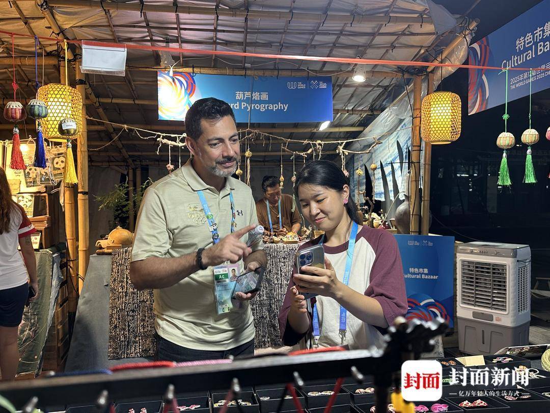 在成都世运村摆摊,最大的障碍是交流,但对刘罗琳来说不是难事。平常,她就打字和人交流,速度很快,“我在手机上装了一款翻译软件,可以支持20多种外语翻译。”刘罗琳告诉记者,为了和顾客更好地沟通,她还给每一个产品都做了中英文介绍牌。