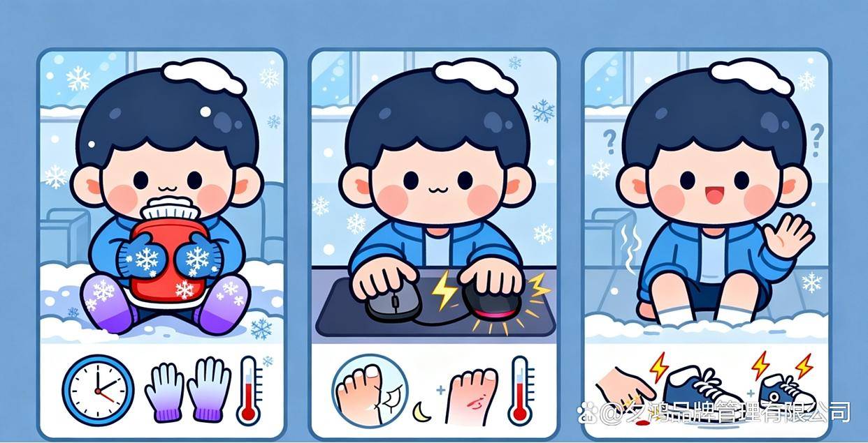 • 秋冬保暖 “偷工减料”:为追求美观穿露脚踝裤子、单层薄袜,或室内空调温度低于 18℃却不添衣物,会让手脚血管因寒冷剧烈收缩,血管腔变窄,血液难以顺畅流向末梢;中医认为 “寒主收引”,寒气入侵会导致气血凝滞,末梢作为 “气血运行的最后一站”,最先出现循环受阻,手脚冰凉加重。