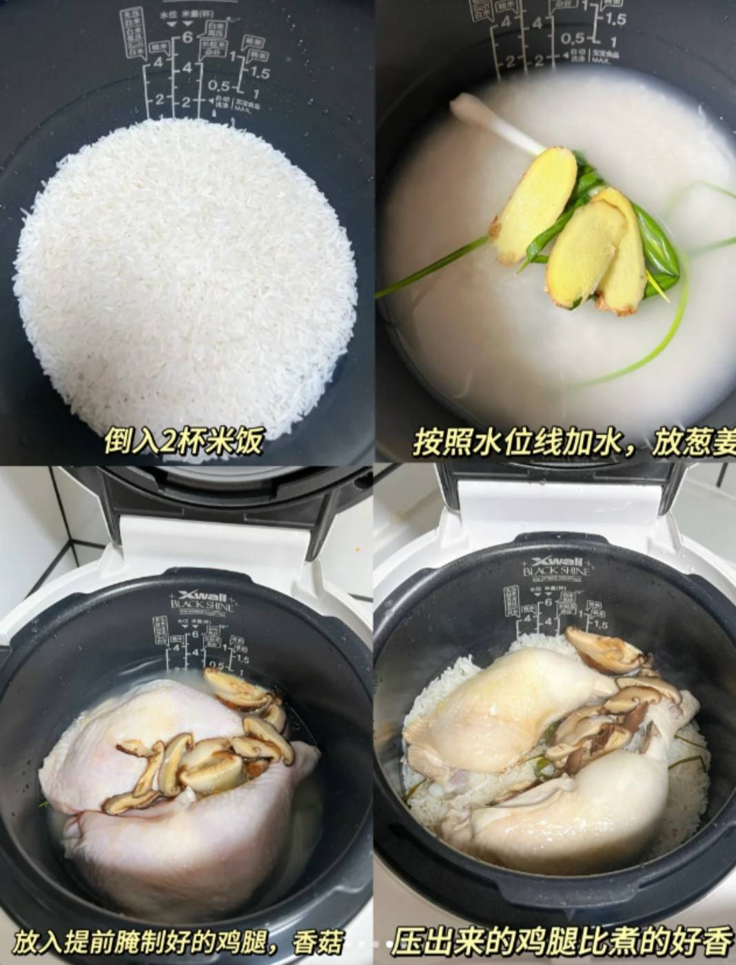 腌制好后,我们可以开始煮米饭。选择适合自己的品种,普通的白米或糙米都是不错的选择。将米饭按照正常的水量煮熟。与此同时,可以准备一个高压锅,将腌好的鸡腿放入锅中。可以加些葱段和姜片,这样更能增加鸡腿的风味。