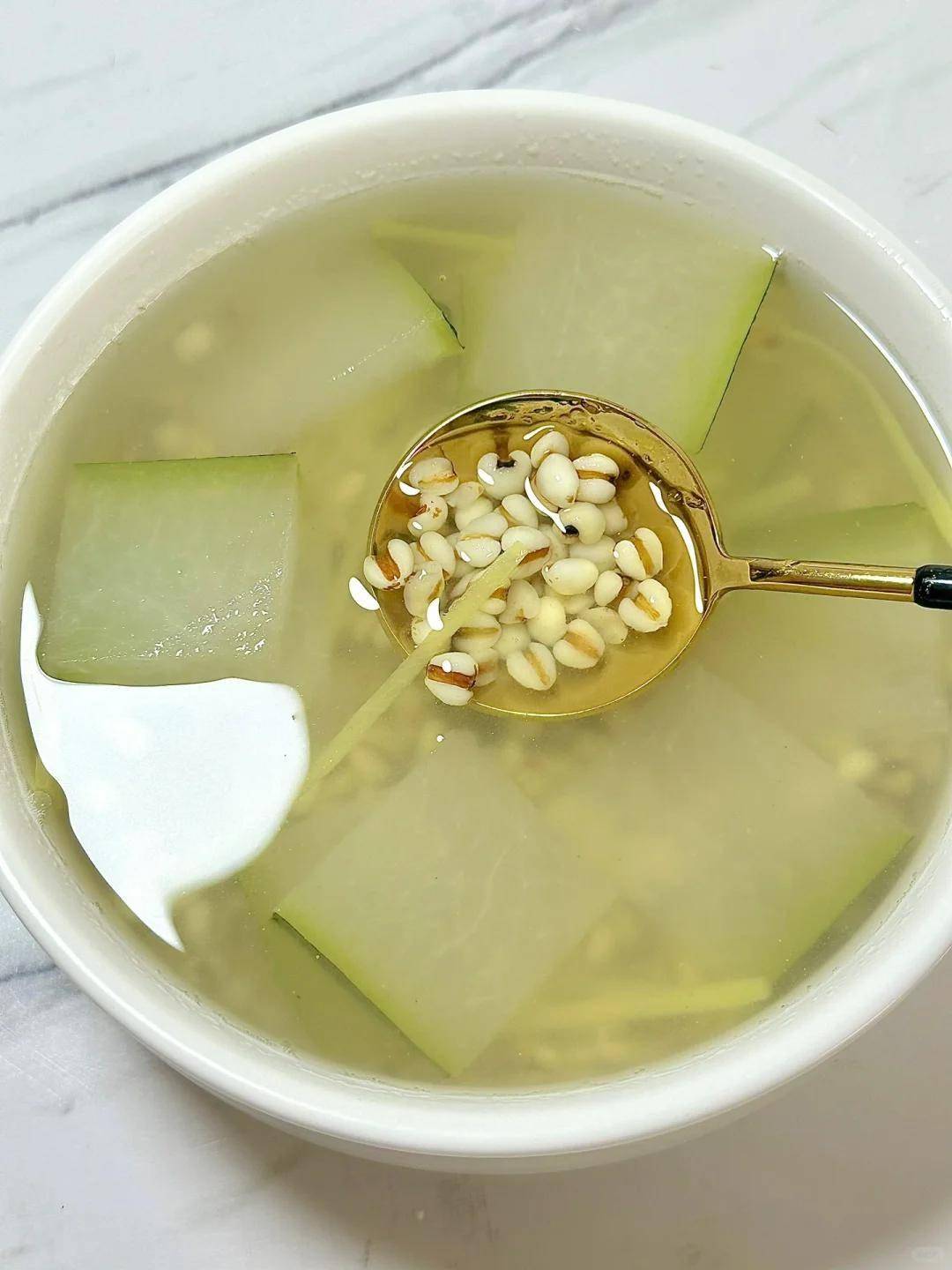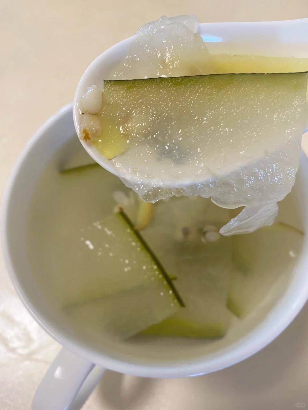 最治愈的时刻在傍晚时分——文火慢炖三小时后,冬瓜变成半透明的玉色,薏仁绽开成小小的白花,老姜的香气则像暖流弥漫整个厨房。三个让效果翻倍的小技巧: