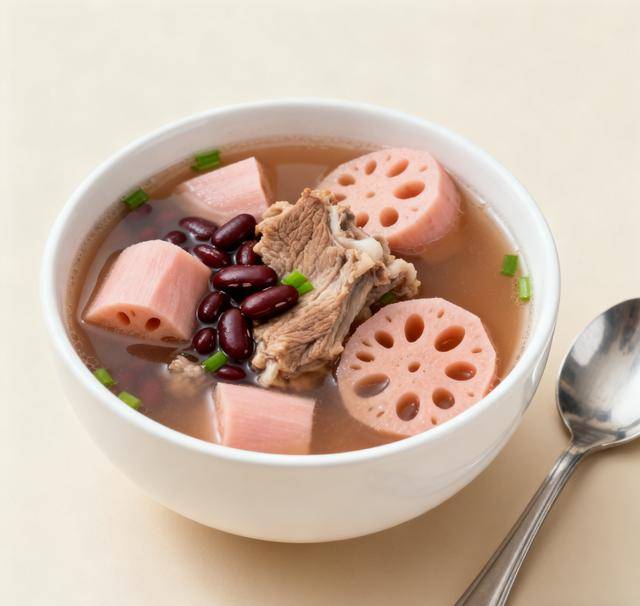 做法:排骨焯水去血沫,莲藕去皮切块(保留藕节,增强止血散瘀效果);砂锅中放排骨、莲藕、赤小豆、生姜,加足量清水大火煮沸,转小火慢炖50分钟;最后加盐调味,撒葱花即可。