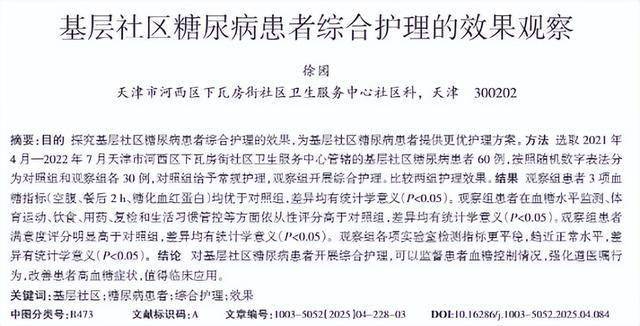 [1]徐园.基层社区糖尿病患者综合护理的效果观察[J].中国城乡企业卫生,2025,40(04):228-230.