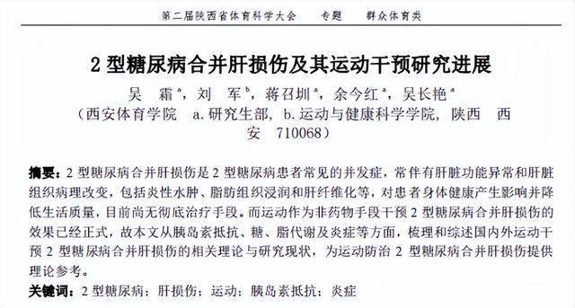 吴霜,2型糖尿病合并肝损伤及其运动干预研究进展,第二届陕西省体育科学大会论文摘要集(专题九),2024-06-18