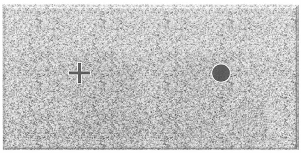 接下来闭上你的左眼,用右眼看左边的加号,这时候你会发现右边的圆点不见了,记得将注意力放在左边的加号上,不要有让右边消失的强迫意识,还能看见圆点的过来找我。