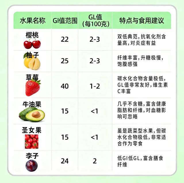 最优选择是【低GI + 低GL】的水果,它们就是控糖的“超级明星”!