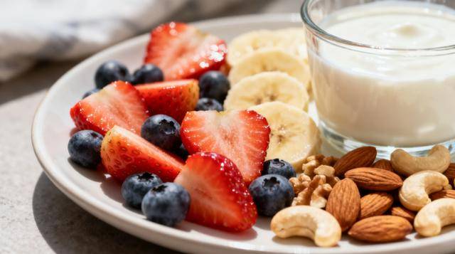 吃水果时,搭配一些蛋白质或健康脂肪,如一小把坚果、一杯无糖酸奶,可以有效地平稳血糖波动。