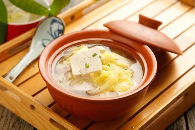 小白菜炖豆腐(小白菜100克、鲜香菇20克、北豆腐30克)