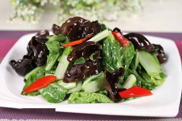 木耳炒小白菜(小白菜100克、水发木耳20克)