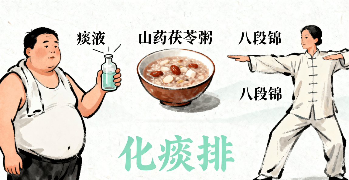 典型表现:平时痰多、嗓子有异物感,体型偏胖、肚子松软,湿邪长期滞留凝结成 “痰”。调理方法: