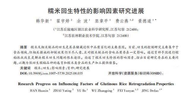 [1]韩华新,翟宇婷,余波,等.糯米回生特性的影响因素研究进展[J].现代农业科技,2025,(08):136-140.