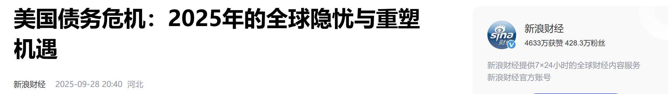 2.《美国债务危机:2025年的全球隐忧与重塑机遇》2025-09-28 20:40 | 来源:新浪财经
