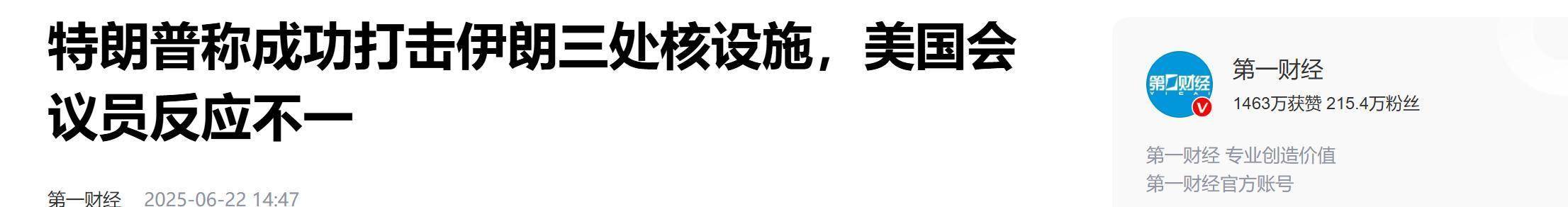 1.《特朗普称成功打击伊朗三处核设施,美国会议员反应不一》2025-06-22 14:47 | 来源:第一财经