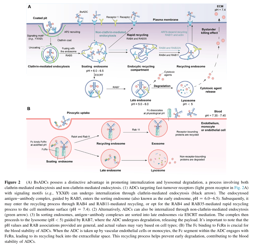就像图 1 里展示的,BsADCs 的抗原结合位点要考虑 “怎么交联内化”“怎么运输到细胞里”,这些都跟靶点选择直接相关。