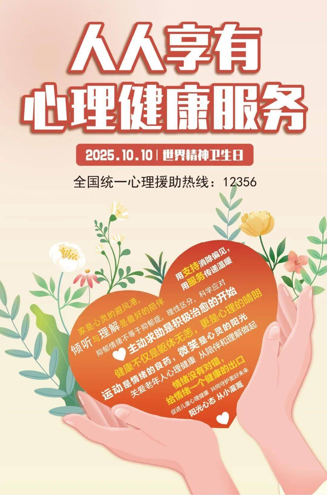 每年的10月10日是世界精神卫生日。这不仅是一个纪念日,更是全球范围内对每个人内心状态的一次集体关怀。2025年的主题——“人人享有心理健康服务”,提醒我们:心灵健康不是奢侈品,而是每个人都应享有的基本权利;它不仅需要专业支持,更需要我们每个人的觉察与积极行动。