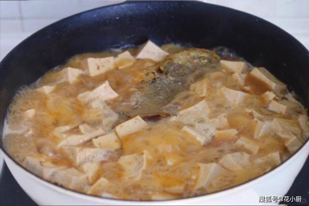 3、鱼煎好后,把切好的葱姜蒜放进去,小火炒出香味儿。接着淋上两汤匙鲜酱油,这时候锅里 “滋啦” 一声,香味立马就出来了。然后加入和鱼身差不多高的水,为啥水要加这么多呢?因为等会儿还要放豆腐进去,水少了可不行。
