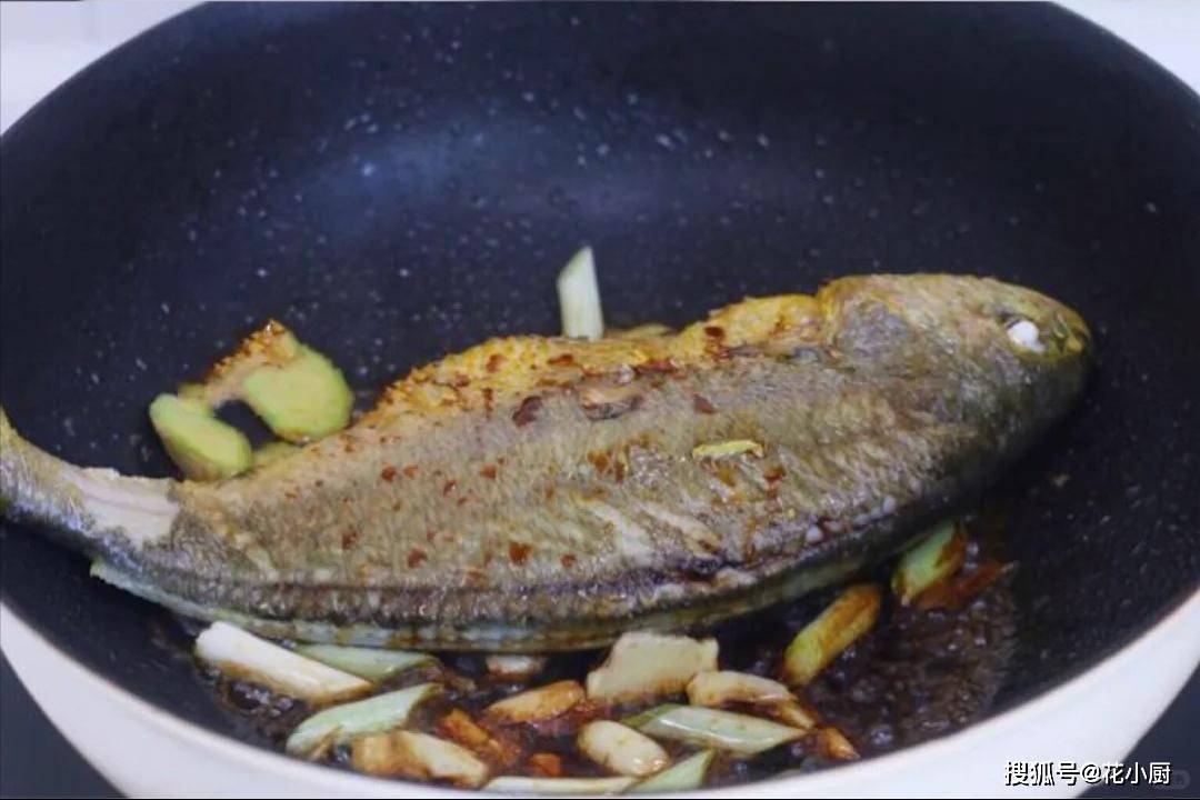 2、接着,把葱姜蒜切一切。然后起锅烧油,等油热了,把黄花鱼放进锅里,用小火慢慢煎。煎的时候可得有点耐心,时不时晃晃锅,让鱼受热均匀,煎到两面金黄,这鱼就煎好啦。为啥要先煎鱼呢?就是为了让鱼肉在烧的时候不散,也不容易烂。