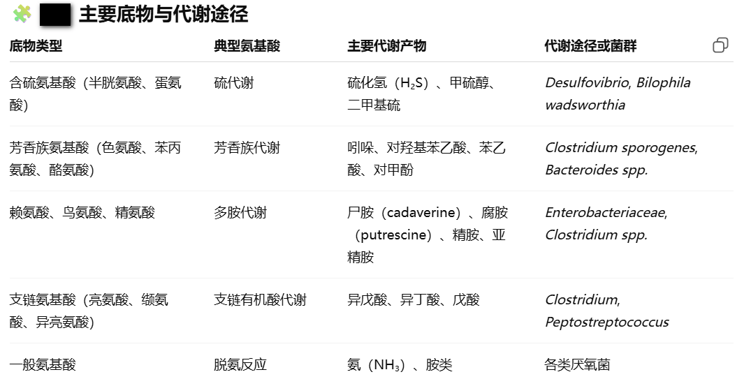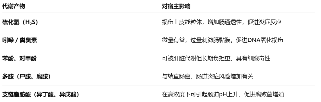 未完全消化的蛋白质进入结肠 → 被腐败菌分解 → 产生胺类与吲哚类化合物。