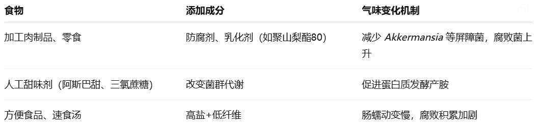 这些食物破坏肠黏液层、抑制有益菌,使腐败代谢增强。