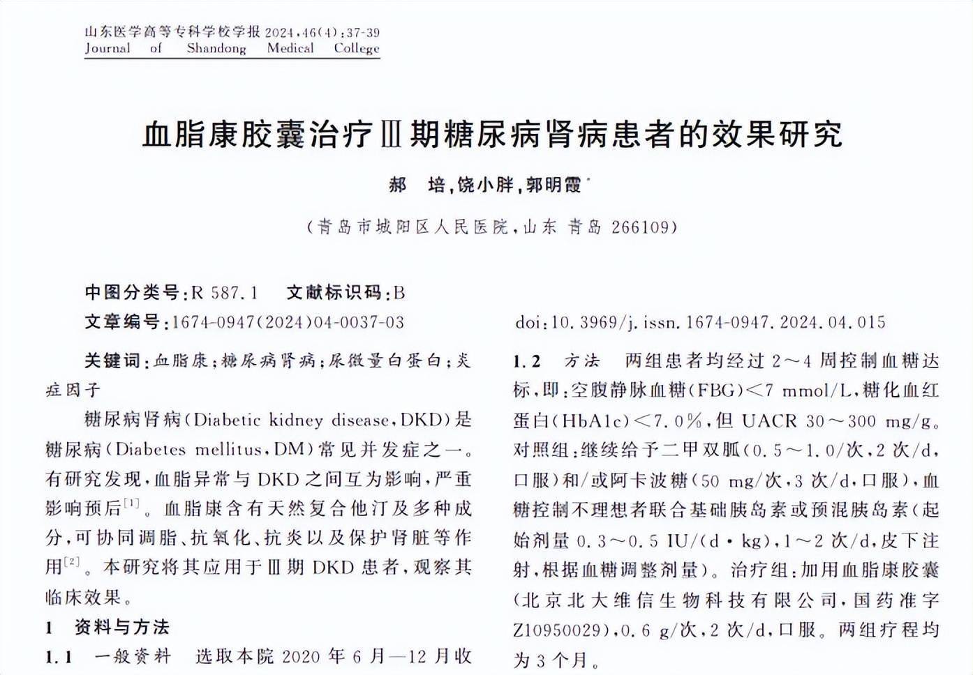 [1]郝培.血脂康胶囊治疗Ⅲ期糖尿病肾病患者的效果研究, 山东医学高等专科学校学报, 2024-08-01.