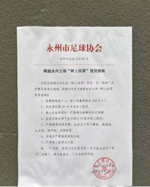 “每棵树限挂3人,单人体重不能超过160斤。”9月下旬,永州市体育中心因“湘超”足球赛推出的“树上挂票”迅速火爆出圈。这份由永州足协正式发布的红头文件,让不少超重球迷不得不面临一个现实:要想在树上为自己支持的球队呐喊助威,首先得和体重秤来一场“对决”。