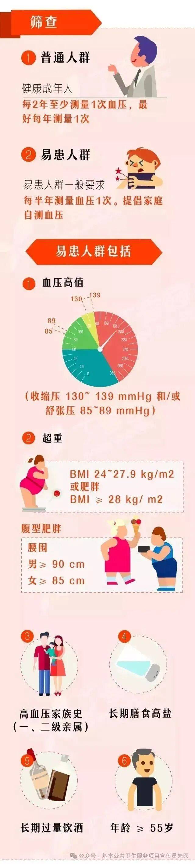 建议个体从30岁开始,便养成每年定期体检的习惯,平时生活中也要避免劳累,健康生活,若体检发现血压较高,要及时就诊,听取医生建议来合理调控血压。在血压得到有效控制,后续进行体检时,除了血压测量,还要检查微量白蛋白、尿常规、肾脏功能、心脏功能等,以确保可以尽快发现并处理相关并发症,最大限度降低高血压对人体健康乃至生命安全的不良危害。