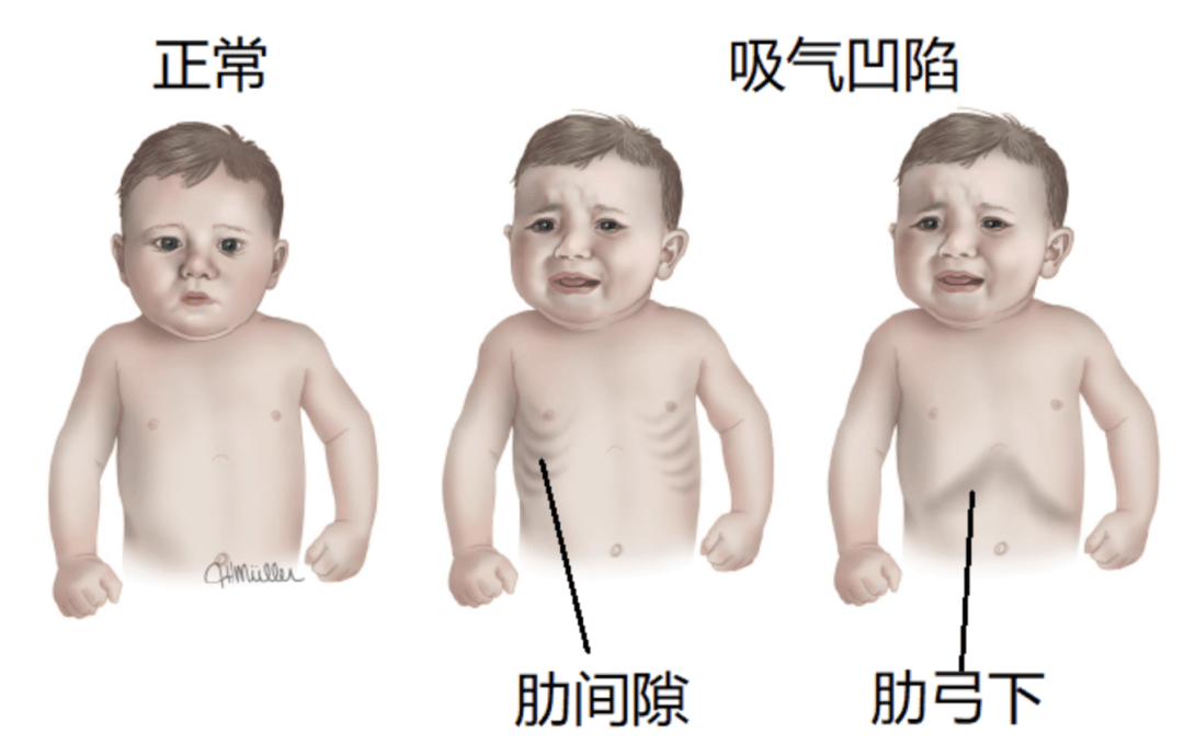 ● 肋骨间或胸廓下方的皮肤和肌肉看上去有内陷