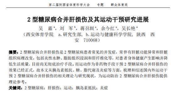 [1]吴霜,2型糖尿病合并肝损伤及其运动干预研究进展,第二届陕西省体育科学大会论文摘要集(专题九),2024-06-18