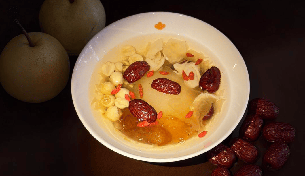 ▲温良山秋甜品店的桃胶百合炖雪梨