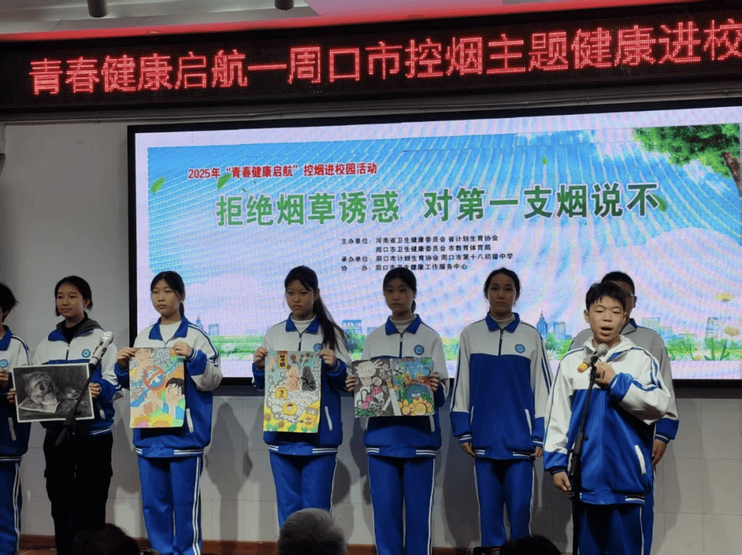 “青春正好,别让香烟偷走朝气!”10月11日,周口市第十八初级中学校园内掌声阵阵,由河南省计划生育协会主办,周口市卫生健康委、市教育体育局、市计划生育协会联合承办的“青春健康启航”控烟主题活动在此热闹启幕。这场专为青少年打造的控烟宣传活动,以沉浸式体验、互动式展演的方式,为全校师生送上了一堂生动的“健康守护课”。