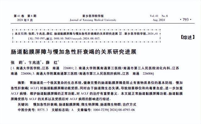 [1] 张莉.肠道黏膜屏障与慢加急性肝衰竭的关系研究进展,新乡医学院学报, 2024-08-05