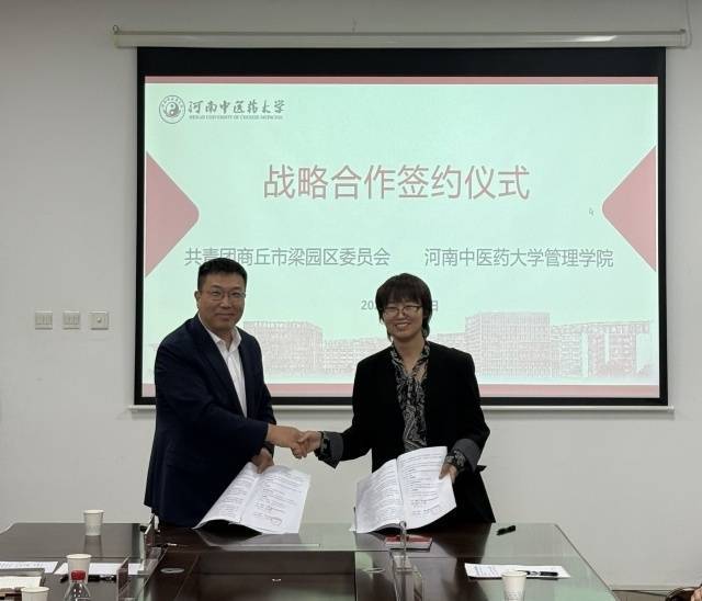 本报讯(记者 杨振东 通讯员 丁俊凌 刘梦迪)2025年9月29日,河南中医药大学管理学院与河南省商丘市梁园区政府签订战略合作协议,共同探索“校政企协同创新”。