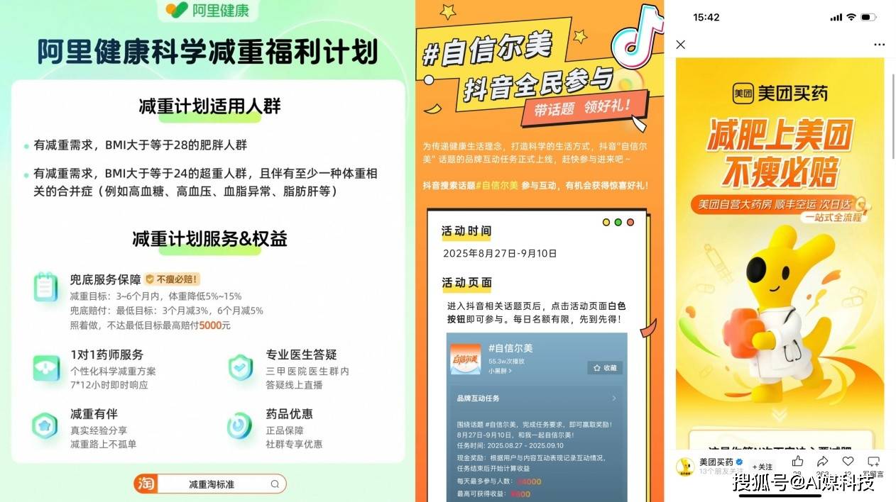 美团则在同一时期推出“不瘦必赔”专区,用户购买指定的GLP‑1类减肥药(如司美格鲁肽、替尔泊肽)后,若28‑35天内体重未出现下降,即可获得200‑600元不等的美团余额赔付。该活动同样要求用户完成首次称重、后续复称,并在平台内完成订单和邀请好友等任务。