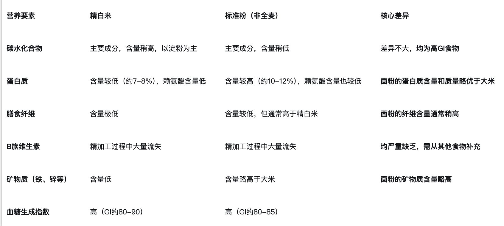首先需要明确,这里讨论的是中国人最主要的主食来源,精制白米和白面粉。