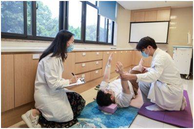 2、康复医学科主任助理谭同才主任技师为患者量身定制个性化训练方案,徐宇恒治疗师每天悉心指导小王同学训练,监测每个动作的完成情况,有时小王同学因为体重原因做一些动作十分困难,康复治疗团队更是积极鼓励小王同学,不要放弃。