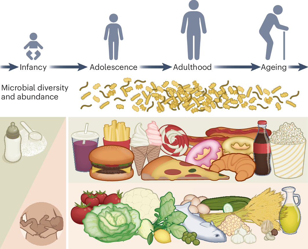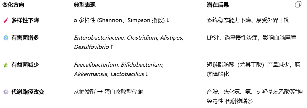 这些机制都与一个因素密不可分,那就是肠道菌群紊乱。大量动物与人群研究都发现:长期高比例的加工食品饮食会导致菌群多样性下降、炎症型菌群上升、有益微生物减少。
