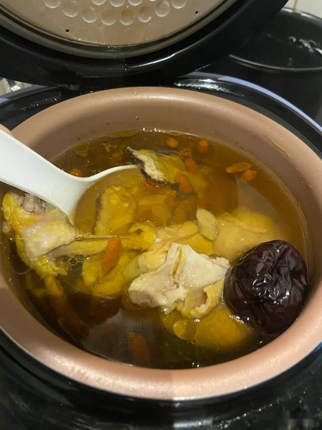 党参黄芪鸡汤:炖汤时加几颗红枣,汤色更漂亮,味道也更甘甜。