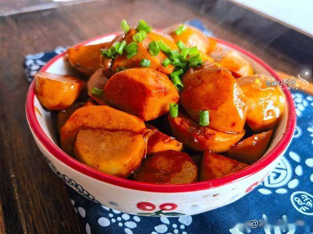 【油焖芋头做法】食材:芋头适量,酱油适量,蚝油少许,红糖少许,盐少许,葱段,姜丝,花生油适量。