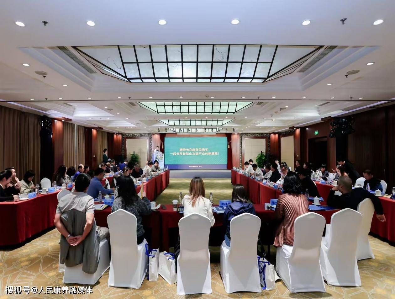 浙江舟山群岛新区普陀山-朱家尖管理委员会党委副书记、主任丁维东,舟山市人民政府驻北京联络处党组书记、主任夏培一,舟山市人民政府驻北京联络处党组成员、副主任桂海滨,普朱管委会经济发展局局长王智慧,普陀山镇人民政府党委副书记、镇长贺磊,朱家尖街道办事处党工委委员、副主任王成名,普陀山投资促进中心负责人余璐璐,普陀山旅游集团有限公司党总支书记、董事长孙涛,普陀山镇人民政府副镇长姜卢清及北京地区42家文旅、康养、科技相关领域企业代表共同出席本次招商对接会。